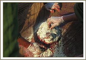 Prognosis: Guarded. Traumatic orchiectomy may cause severe life threatening internal bleeding. The lion died after 48 hours before a clinical review could be conducted. ABDOMINAL SWELLING IN ELEPHANT IN MERU NATIONAL PARK