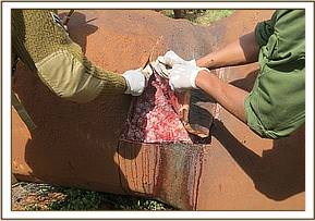 The Meru MVU following consultation with the management of this captive facility attended to the injured animal on Thursday 11th April 2013.