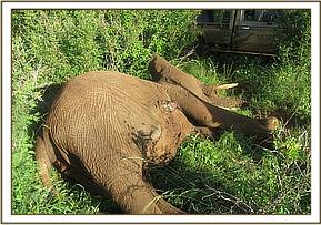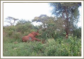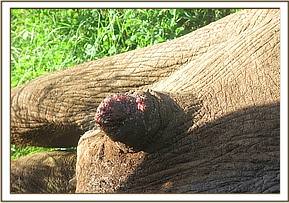 A male adult elephant was reported to have a red swelling on its ventral abdomen by rangers on patrol at the Bwatherongi camp site on 23rd April 2013. The elephant was spotted in a herd of 30 animals.