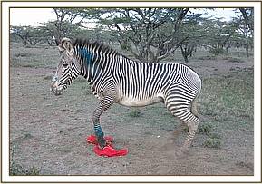 The Grevys’ zebra was reported to have shown severe lameness on the left forelimb with little movement over a period of three days. It was spotted by cattle herders in Kisima on 24th August who reported to the Grevy Zebra Trust field officers. We immobilized the zebra for treatment on 27th August.