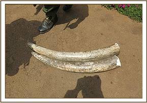 An elephant bull in Meru national was detusked on 10th August. This elephant had been translocated from Laikipia one year prior and had a history of fence breaking and destroying crops in community farms bordering the western part of Meru national park. Elephant was darted from a helicopter using Etorphine hydrochloride 18mg in a 1.5cc dart delivered using a DanInject darting system. Induction time was 7 minutes after which he was positioned on lateral recumbency for the procedure. The full length of the tusk was measured from its tip to the point of skin contact and two thirds of the tusk was cut off using a power saw. A third of the tusk was left to ensure that the central nerve was not exposed. Petroleum jelly was applied to the cut surfaces of the tusks to prevent cracking and chipping. Subsequently, the animals were revived with Diprenorphine hydrochloride 54mg administered intravenously through the ear vein.