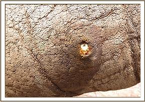 Examination showed a penetrating wound to the left hind leg thought to have been caused by a bullet. The entry point was identified at the caudal part of the leg with suspected fracture of the tibia bone. Bone fractures caused by bullets in elephants have a poor prognosis due to the massive weight which makes it difficult to fix the bone. In this case a high dose of injectable antibiotic Betamox with a corticosteroid Dexamethasone was administered. The team recommended further observation of this elephant.