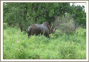 After a brief search in an area where it was seen earlier that day, this water buck was found near the road leading to Elsas Kopje lodge. It was in company of two calves and looked calm on approach.