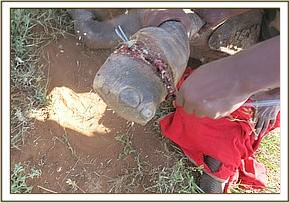 In Ol Jogi ranch, Laikipia we removed a wire snare from an elephant calf which had inflicted a debilitating leg injury. In Meru National Park we treated a white rhino for soft tissue injury suffered in a territorial fight and removed a snare from the neck of a water buck.