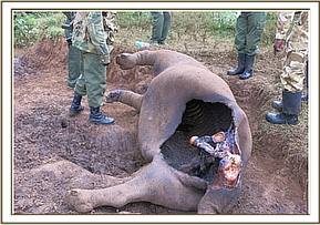 Post mortem examination of a black rhino in Aberdare national park
