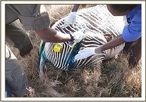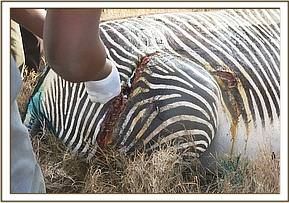 This pregnant female grevys’ zebra was reported to have suffered injuries following a lion attack on 26/1/2015. The research team in LWC requested treatment of its infected wounds.