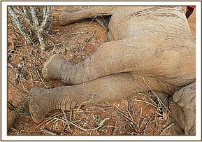 Anesthesia was reversed using 36 mg of Diprenorphine hydrochloride intravenously at a prominent ear vein and the elephant was up on its feet 5 minutes later. The fracture hematoma plays an important part in the initial stage of regenerative process of fracture healing as a source of inflammatory cells which aid in the bone healing process. The elephant was young and has a chance of healing completely. Healing may be prolonged due to the long distance the elephant would have to cover to get to a water point during the drought season.