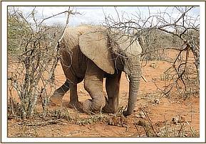 A sub- adult elephant was reported to be lame by Naibunga Conservancy Rangers. The elephant presented with weight shifting lameness favouring the right forelimb which was visibly swollen. The body condition was good, but the young elephant was alone and had a slightly irritable demeanor.