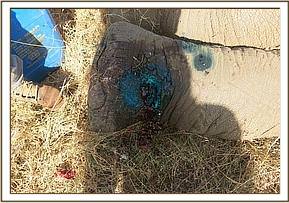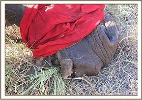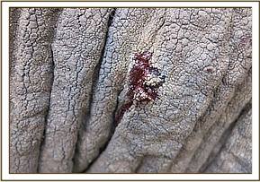 Examination showed lacerations to the carpal joint of the left forelimb and an infected puncture wound on the left ventral flank. There were bruises on the ventral neck area. The rhino’s front horn was amputated from the base causing a benign wound which showed signs of healing.