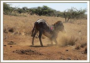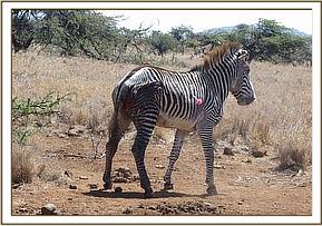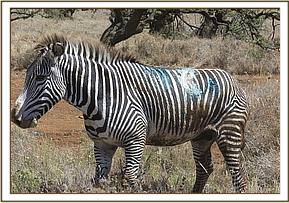 An adult male Grevys’ zebra in Lewa wildlife conservancy (LWC) sustained injuries on its rump and hind quarters when it was attacked by a lion. It was seen by tourists during a game drive who requested for its treatment through the LWC wildlife monitoring team.