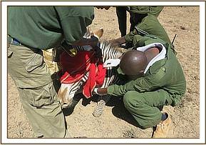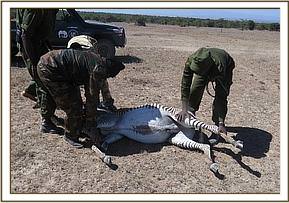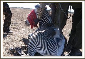 One Grevys zebra was darted to collect samples for confirmatory diagnosis and Etorphine Hydrochloride 3mg with Xylazine hydrochloride 40mg in a single 1.5cc DanInject dart was used.
