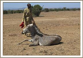Three free ranging subadult Grevys’ zebra in Ol Pejeta conservancy (OPC) showed progressive loss of body condition and rough hair coat. Wildlife monitoring team in OPC suspected severe helminth infestation and/or tick borne disease infection and recommended immobilization for sample collection and analysis for diagnosis.