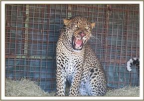 This leopard was identified as the cause of livestock losses in the ranch. It was captured using a cage trap and relocated to Meru Park.