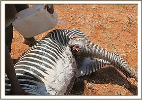 An outbreak of anthrax in wildlife in Lake Nakuru national park which caused a threat to populations of endangered species such as rhino and Rothschild giraffe was controlled through vaccination, proper carcass disposal and disinfection. In Samburu national reserve a Grevys zebra was treated for injuries sustained in a predator attack. Other cases are described in the following report.