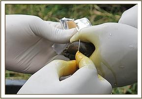 A combination of 7mg M99 and 80mg Xylazine Hcl delivered in a 1.5 cc dart was used for immobilization. The first dart failed to discharge but the zebra went down 12 minutes after the second dart which was injected in the gluteal muscles. A blind fold was fitted and the zebra positioned on lateral recumbency for examination.