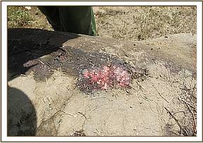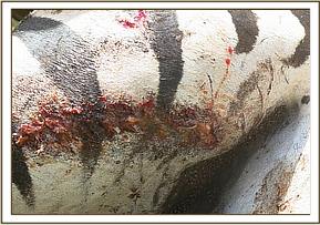 Examination of the injured leg showed a swollen hock joint and deep bite wounds which were inflicted in a predation attempt. There were lacerations on the flanks and bite wounds on the nape and dorsal muscles of thoracic vertebrae.