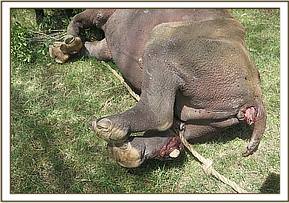 This elephant was euthanized to relieve it of pain and suffering attributed to the fracture.