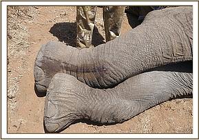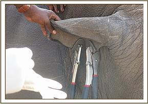 An assessment showed swollen thigh muscles of the left hind leg. Manipulation of the femur revealed crepitus and a fracture line. Fractures in elephants have a poor prognosis for recovery, therefore, euthanasia was recommended to relieve pain suffering by this young elephant.