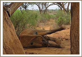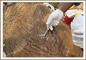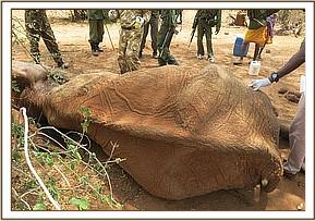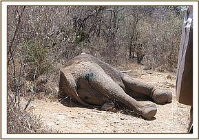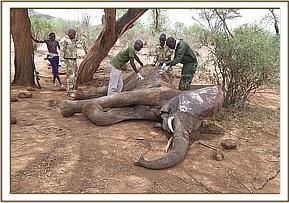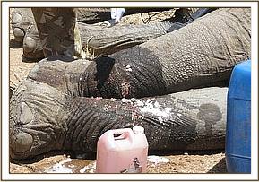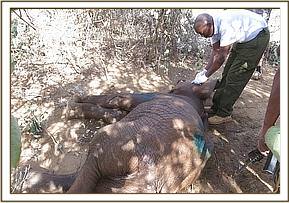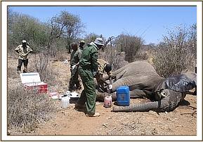 This elephant was immobilized with 3mg Etorphine hydrochloride in a 1.5cc Dan-Inject dart from a helicopter provided by the Samburu Trust.