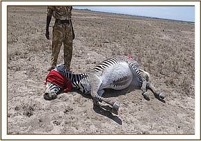 The anesthesia was reversed using a combination of Diprenorphine and Atipamazole. However, the zebra could not stand on his feet. He was given lactated ringer’s solution intravenously but later succumbed at night.
