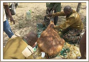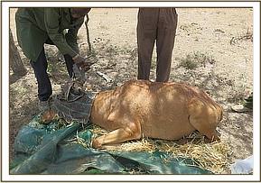 Four bushbucks were captured using the net capture method while three Waterbucks were darted using a combination of M99® and Domitor®. Cattle were restrained using ropes and a crush.