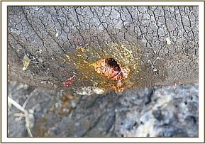 A quick examination showed a swollen right forelimb with a deep penetrating wound (> 6 inches) into the carpal joint. Copious pus discharged from the wound. There were penetrating wounds at the base of the trunk and into the metatarsal of right hind limb. These injuries were caused by gunshot.