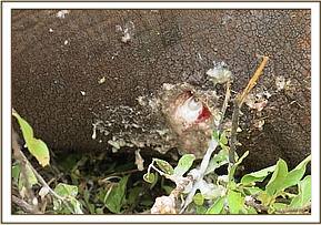 The warden in charge of rhino at Meru national park reported a white rhino carcass identified as Silvan (Male, identity number 70W44) on 14th May 2014. Both horns were intact. This rhino had been treated on 6th May 2014 by Dr. Mutinda for wounds on the flank inflicted during a territorial fight with another bull.