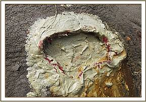 - Thorough wash with water, dilute hydrogen peroxide and debridement of necrotic tissue.