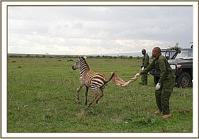 The wildlife monitoring team in Solio ranch reported two zebra with wire snares injuries on their legs. We visited the ranch on 29/11/17 to remove the snares and treat the wounds.