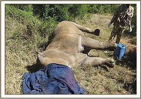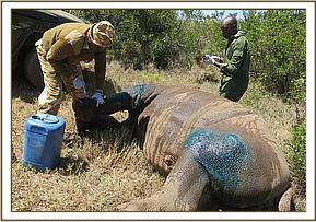 Treatment of an injured white rhino in Solio ranch