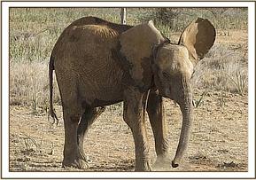 This elephant calf in Naibunga Conservancy was reported to have shown severe emaciation over a two week period and had been abandoned by the rest of the herd. It had a swelling on its lower jaw which was oozing pus. Elephant scouts from Space for Giants requested for veterinary evaluation of this calf.