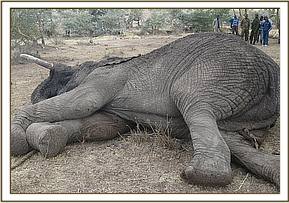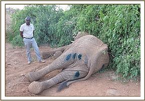 This elephant was revived using Diprenophine hydrochloride given by intravenous route on superficial ear veins. We are hopeful that this elephant will make a full recovery over the next few weeks.