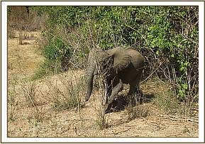 A quick observation showed that this calf was in good body condition. A swelling reported at the inguinal area was evaluated to be of no clinical significance. Wildlife scouts in the camp were tasked with monitoring and reporting if further veterinary assistance was required.