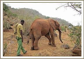 Irima, is a shy elephant treated on several occasions by the unit last year of arrow wounds. This time round he sustained a blunt hit in the leg with a small swelling on the medial side of the hind limb. Management involved close monitoring for further detororiation and close follow-up