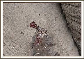 Two of the cases attended to in early March were reported in the February report. These were two elephants in Amboseli from the same family attacked across the border in Tanzania. The condition of the ten-year-old female is said to have deteriorated after the treatment. The wound on the right carpal joint which had been given a guarded prognosis because of the involvement of the joint was said to have developed complications. The entire leg had become swollen and the animal was ambulating with difficulties. We attempted to search for it two weeks after the treatment for evaluation after we had been called for another injured elephant. However, we did not find it and neither had it been found at the time of preparing this report. It was said to have moved from the park towards the border probably in pursuit of the other injured adult female which was said to have crossed back to Tanzania. The female however was said to have made good progress and crossed the border to search for the other family members.
