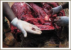 Elephants are also facing a lot of pressure from organised criminals that use sophisticated arms in poaching. These are cases of two sub-adult females that survived poaching with serious injuries that necessitated euthanasia to end their suffering. The first elephant found near the scene of shooting was recumbent and could not stand, arrow wounds were seen in the pelvic area.