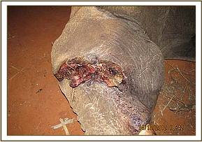 Treatment of injured Elephant bull in Ithumba, Tsavo East, 8th October