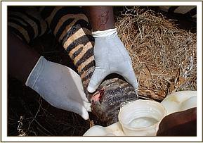 The unit was in frequent communication with the other areas under its jurisdiction namely Tsavo West, Amboseli, Shimba Hills and the ranches in Taita-Taveta district which did confirm that there were no cases of injury or sickness seen. In the entire month, the unit attended to only one case; a zebra stallion in Tsavo East that was seen limping and unable to bear weight on its right hind leg. The zebra was very excited and was not approachable close enough to be able to determine the nature and extent of the injury. We thus immobilised it with a combination of M99® and xylazine hydrochloride for a more detailed examination. It was found to have had a wire snare that had come out a few days before.