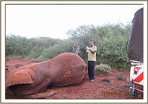 TREATMENTS OF A SICKLY LOOKING ELEPHANT BULL AT MBIRIKANI NEAR AMBOSELI PARK, 11TH APRIL.