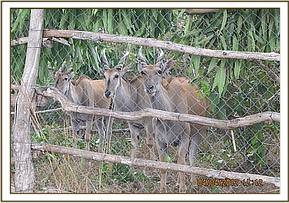 Nguuni sanctuary is a small nature park rehabilitated after cement mining and turned into a wildlife reserve with several species that includes Roschild giraffes, common water bucks, ostriches and elands. Increase in this populations necessitated translocation to reduce pressure on the vegetation. The sanctuary is managed by baobab trust. Initial movement was not successful as the Elands broke out of the lorry after initial drive. Darting was the only option left. 11 mgs of etorphine, 15 mgs of Detomidine Hcl (Domosedan) and 1000 i.u of hyalase were used to immobilize 4 Elands, 3 males and 1 male. The animals were loaded one by one onto a truck covered with a tarpaulin and etorphine reversed using diprenorphine at 3 times the etorphine dose. Domosedan was left to keep the Elands calm during transport. The Elands were finally released after 200 km of road transport in good condition.