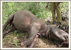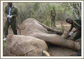 Immobilization and euthanasia of an injured elephant cow in Mwaluganje sanctuary, Shimba hills. 24th April.