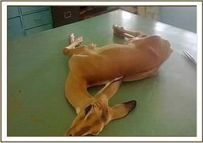 The young Impala was brought into the unit exhibiting nervous signs and unable to stand up. The animal condition also appeared weak and poor.