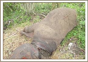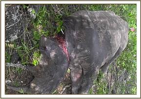 The search for the rhino continued for a non-stop 30 days with teams from the big life, KWS and assistance from the DSWT in hiring of a helicopter. On 19th April the rhino was found and immobilized but due to extensive damage caused by the snare on the neck muscles, he was euthanized. The wire snare had cut through the neck muscles to the cervical vertebrae.