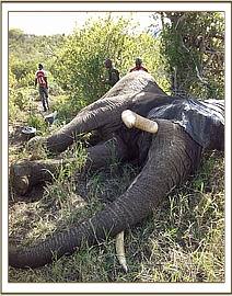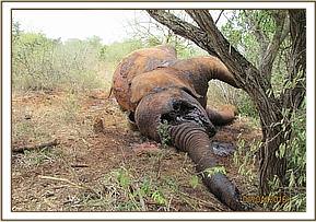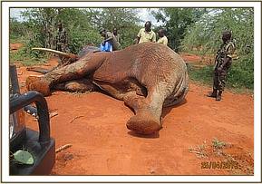 The elephant had two spear wounds, one to the right rump and the other at the base of the trunk.