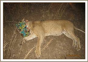 The lioness was immobilized the night after; also responding to a calling station by aid of night vision equipment.
