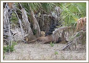 This mane-less lion was spotted by Kipini rangers with a right forelimb injury caused by a nylon rope near the ankle joint. The snare is suspected to have been set by bush meat hunters in the area due to plenty of wild game. The lion was found in a shady area eating a fresh buffalo carcass.