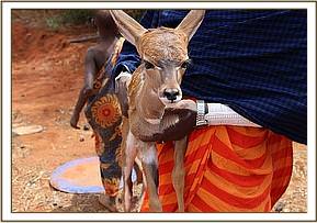 A report was made by community members in Miasenyi village near the park regarding a lesser Kudu kid that came back to a boma with goats that had gone foraging. The community members alerted the park management who later informed the vet team. The vet team rushed to the area to find the tiny kid in a Manyatta. The kid was rescued and taken to Voi stockade where it will be cared for.