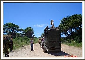 Once the animal was sufficiently sedated, the capture team would rope it down, blind fold it, and the antidotes injected into the jugular vein. Etorphine was reversed with Diprenorphine Hcl (M5050®) at 3x the dose of Etorphine used, while xylazine was reversed with 5mg Atipamezole (Antisedan®). Both drugs were given in the same syringe and the respiration monitored to determine the response to the antidotes. It was judged adequate if deep and regular, and the mucus membranes moist and pink. The response in all animals was satisfactory and no additional antidotes were given. Twelve-mg of M5050® were also given intramuscularly to take care of any re-narcotisation that may occur. The condition occurs when M99® is re-cycled either from the enterohepatic circulation or redistribution from adipose depots. Each animal was also given a broad spectrum amoxycillin based antibiotic (Betamox®) intramuscularly and Ivermectin (Ivomec®) to treat internal and external parasitism. Meanwhile, it was processed for loading into the recovery trailer and after loading it was transported in the same to the release site. It was transported blind folded to reduce stress from visual stimulation. The animals were released into a holding facility for a few hours for observation of any complications that may have arisen during capture and transportation before being free released. The exercise was very successful and no mortalities were experienced. Very high mortalities during giraffe capture have been documented.