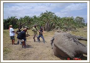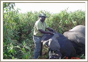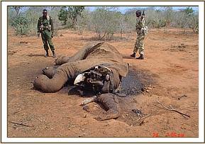On the 24th August, the unit was requested by the management of Tsavo East Park to help assess the possible cause of death in an adult elephant at Dakota ranch on the southern boundary of the park. The carcass was however in an advanced stage of decomposition (at least one week old) to do any autopsy. However, foul play is suspected as the tusks were missing.