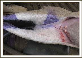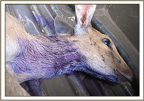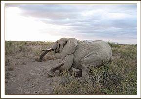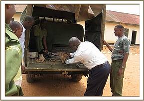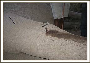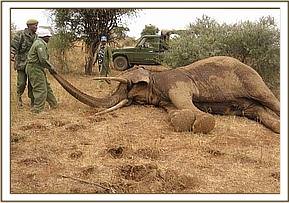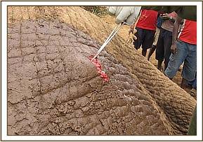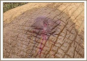 The third case was sighted when we were there attending to the above two elephants. It was outside the park in the community areas on the western side of the park close to the Tanzania border. It had an injury on the left fore leg from a poisoned nail arrow as described above. The leg was moderately swollen resulting to severe lameness. Antibiotics and a corticosteroid anti-inflammatory drug (Dexamethasone) were administered systemically. The tiny penetrating wound was infused with an antibiotic ointment. There has been no more sighting of the elephant after this treatment. Prognosis was guarded.